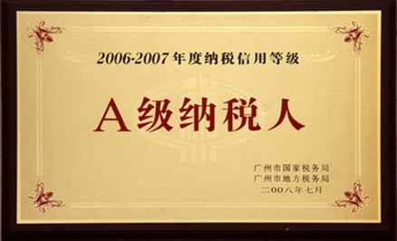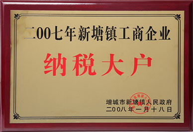 2008年获“增城市新塘镇人民政府”评为“纳税大户”