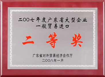 广东省大型企业一般贸易进口二等奖 --2008年