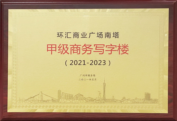 环汇商业广场南塔获评广州市甲级商务写字楼