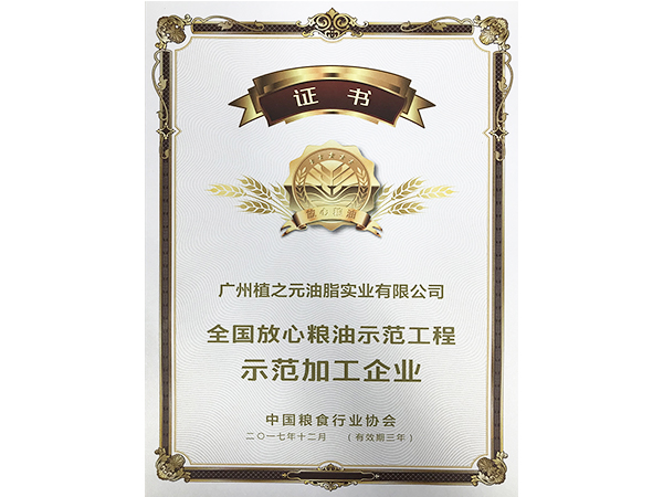 2017年度中国棕榈油加工企业10强荣誉证书
