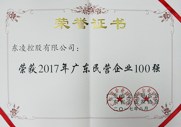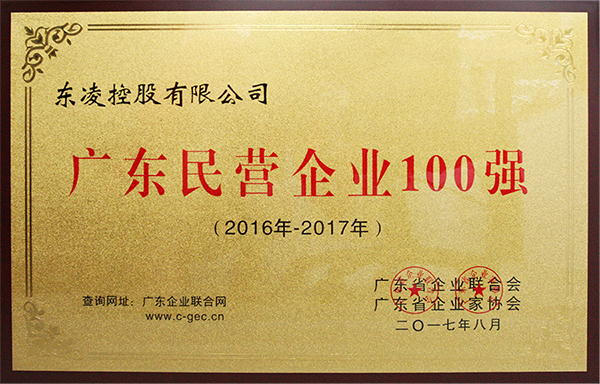 广东民营企业100强证书