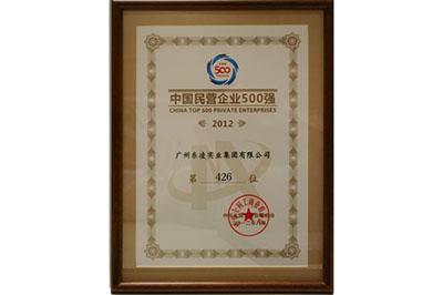 广州多宝(中国)官方实业集团有限公司荣中国民营企业500强--2012年